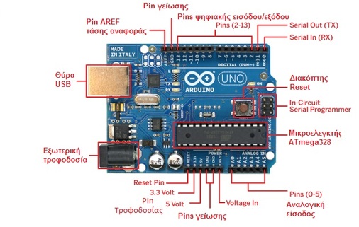 Το Arduino είναι μία ηλεκτρονική πλακέτα, ανοιχτού κώδικα και υλικού, βασισμένη σε εύχρηστο υλικό και λογισμικό. Είναι σχεδιασμένη για εκμάθηση φίλων της τεχνολογίας ώστε κάποιος να μπορεί σχετικά εύκολα και γρήγορα να δημιουργήσει ηλεκτρονικές κατασκευές μαθαίνοντας προγραμματισμό και ηλεκτρονικά ταυτόχρονα. Η καρδιά του συστήματος είναι ένας προγραμματιζόμενος μικροελεγκτής (microcontroller) οποίος μπορεί να αλληλεπιδρά με το φυσικό περιβάλλον μέσω διάφορων αισθητήρων σε σύγκριση με τους παραδοσιακούς προσωπικούς υπολογιστές, που ουσιαστικά περιορίζονται στο εικονικό περιβάλλον. Πρόκειται για μία πλατφόρμα “physical computing” (υπολογισμός φυσικού κόσμου) που μας επιτρέπει να λαμβάνουμε σήματα από διάφορους ψηφιακούς ή αναλογικούς εισόδους ( πχ αισθητήρες) και να ελέγχουμε διάφορες άλλες εξόδους (πχ μηχανές, λάμπες, ασύρματα module επικοινωνίας κλπ)