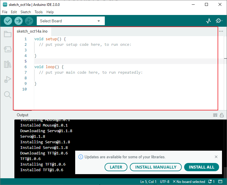 Η γλώσσα προγραμματισμού Arduino είναι μια υλοποίηση της Wiring, μιας παρόμοιας πλατφόρμας για “φυσικούς υπολογισμούς” που βασίζεται στο περιβάλλον προγραμματισμού πολυμέσων Processing. Η γλώσσα αυτή παρουσιάζει σχεδόν τις ίδιες εντολές με την C++ και πρακτικά δεν θα βρείτε διαφορές όσοι είχαν προγραμματίσει παλαιότερα με την C++ .